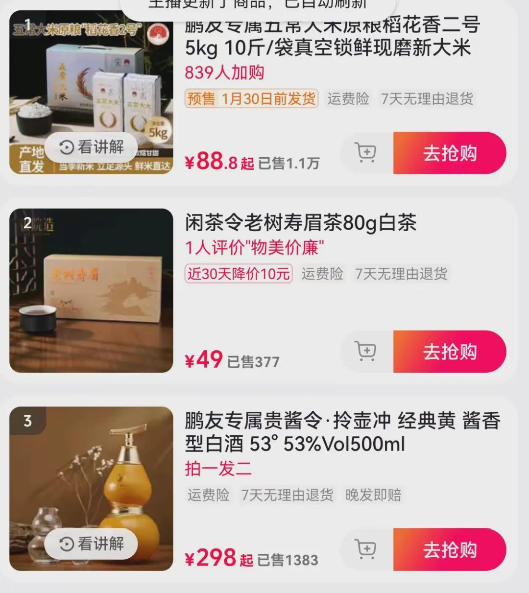 究其原因还是李亚鹏压根没有掌握受众心理,依旧我行我素。在房租欠债风波爆发后,大量网友建议上架售卖日常用品,李亚鹏也只是附和表示感谢,并没有调整选品。从售卖的排行榜来看,当晚的第一名是大米,卖了一万多件,其次是茶和酒,也只有几百上千件。而直播间推流的产品也都还是茶叶相关的产品,说明整个团队都不够敏捷。